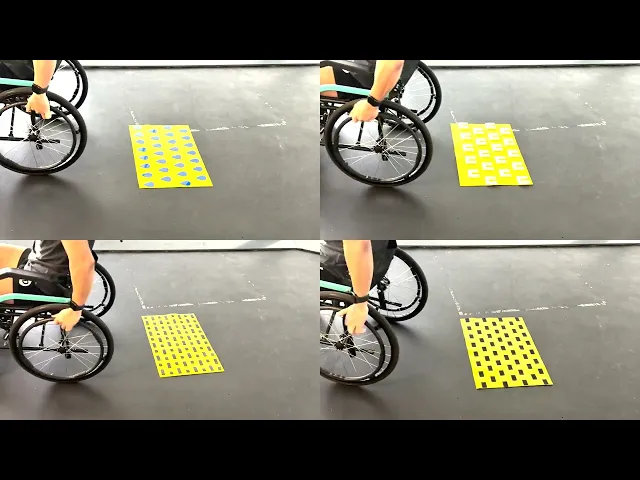 The material choice, shape and pattern should allow users on wheelchair to roll over smoothly.